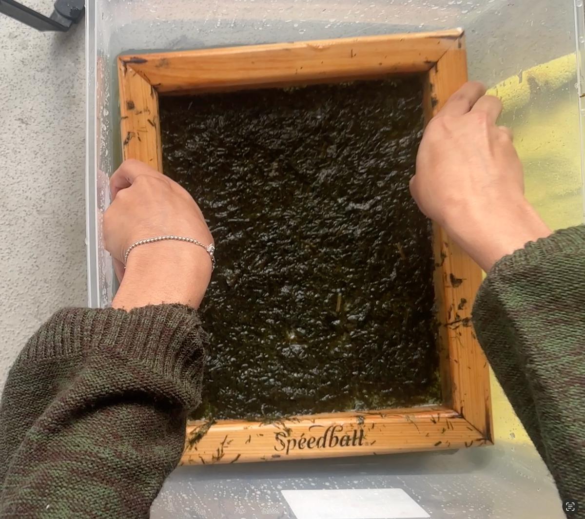 trying to get the paper unstuck from the deeper part of the screen (this would be soooo much easier if i had a mould and deckle