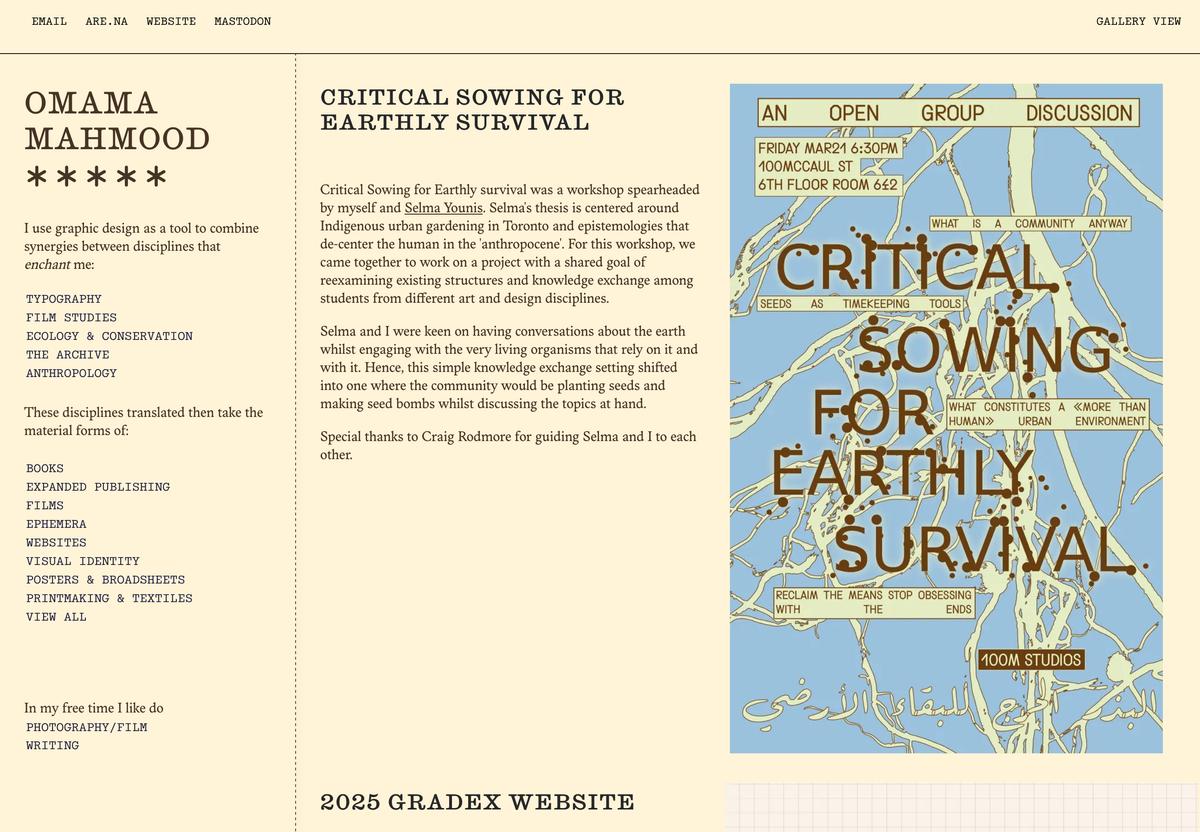 Omama Mahmood is a Pakistani artist (designer, film-maker) unconfined to a single medium. Currently, they are interested in the poetics of understanding what it means to “make with” nature, and observing what “collective decision making” looks like in different circles.